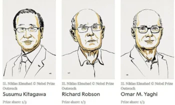 جایزه نوبل شیمی ۲۰۲۵ به سوسومو کیتاگاوا، استاد دانشگاه کیوتو، ژاپن، ریچارد رابسون، استاد دانشگاه ملبورن، استرالیا و عمر، اِم یاغی از دانشگاه کالیفرنیا، برکلی، آمریکا تعلق گرفت.